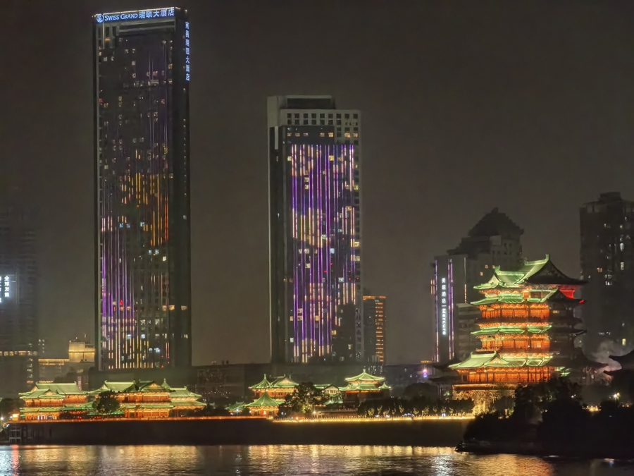 夜间,两岸楼群变身电子大屏上演灯光秀,与“红火”璀璨的八一大桥相映成趣。赣江游轮的舞台上,沉浸式剧目《新琵琶行》准时开场。装扮成白居易和唐代歌姬的演员们一起,将观众带入“枫叶荻花秋瑟瑟”的浔阳江头,让历史在江风中“复活”。现代与经典在“逝者如斯夫”的江水里,传承绵延。
