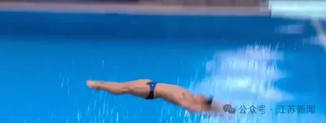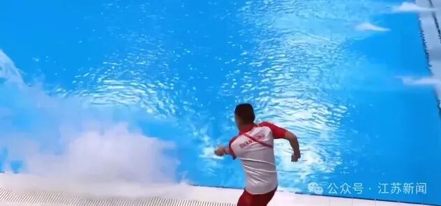 天津队的苏家杰走板转体失误,向左前方冲去后横向落水,差一点撞到泳池边。
