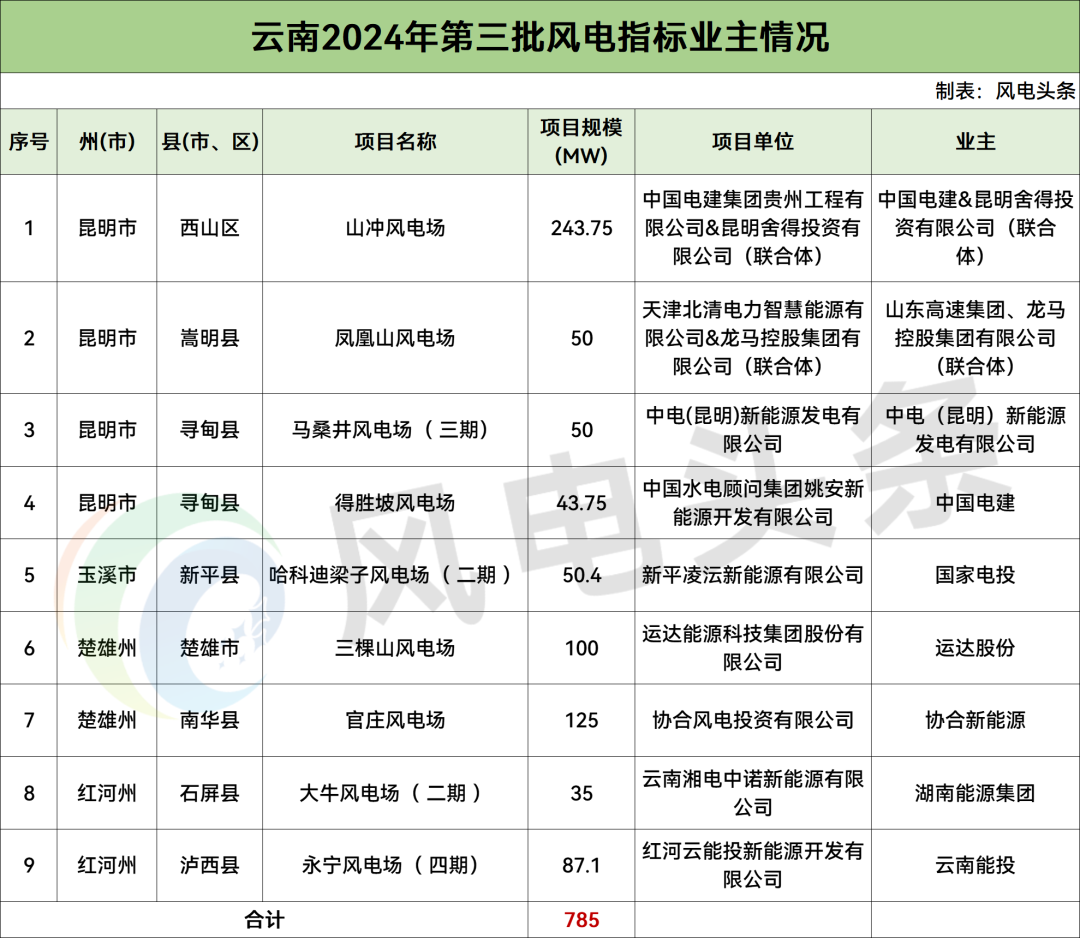此前,2025年12月24日,云南省2025年第三批新能源项目开发建设方案印发,共221个新能源项目,装机1407.633万千瓦,其中风电项目633.554万千瓦。