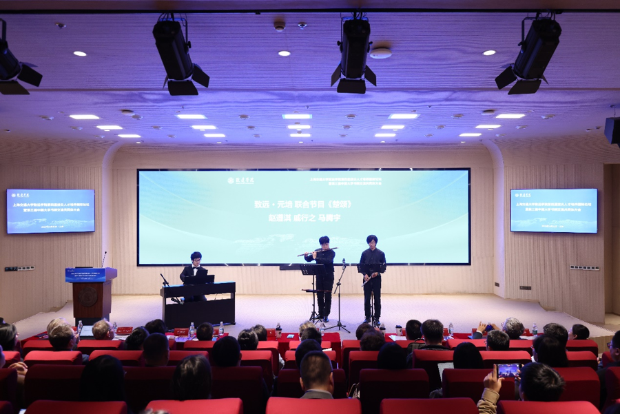 大会伊始,北京大学元培学院与上海交通大学致远学院的学生联袂表演了长笛、竹笛、钢琴合奏曲《楚颂》,展现新时代拔尖学子艺术素养和人文底蕴。