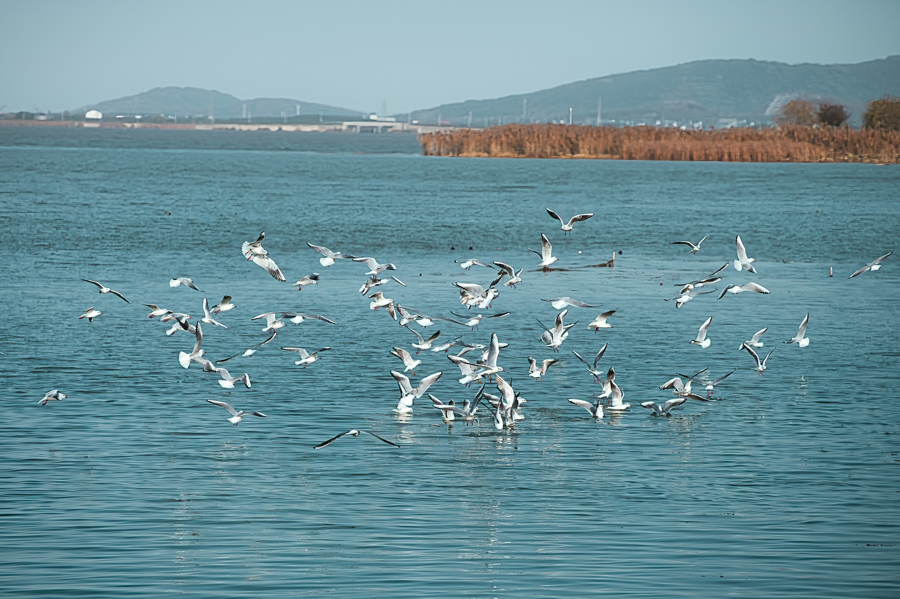 来自泰州的摄影爱好者魏女士,特意为红嘴鸥而来。“我是从抖音上看到的,就自驾寻了过来。果然没有让我失望,这里不仅有美景,还能近距离看到这么多候鸟,太治愈了。”她笑着说,她和老伴在东山玩了两天,白天观鸟拍照,晚上住湖景民宿,还能品尝当地特色美食,体验感特别棒,已将这一旅游线路推荐给了身边很多好朋友。